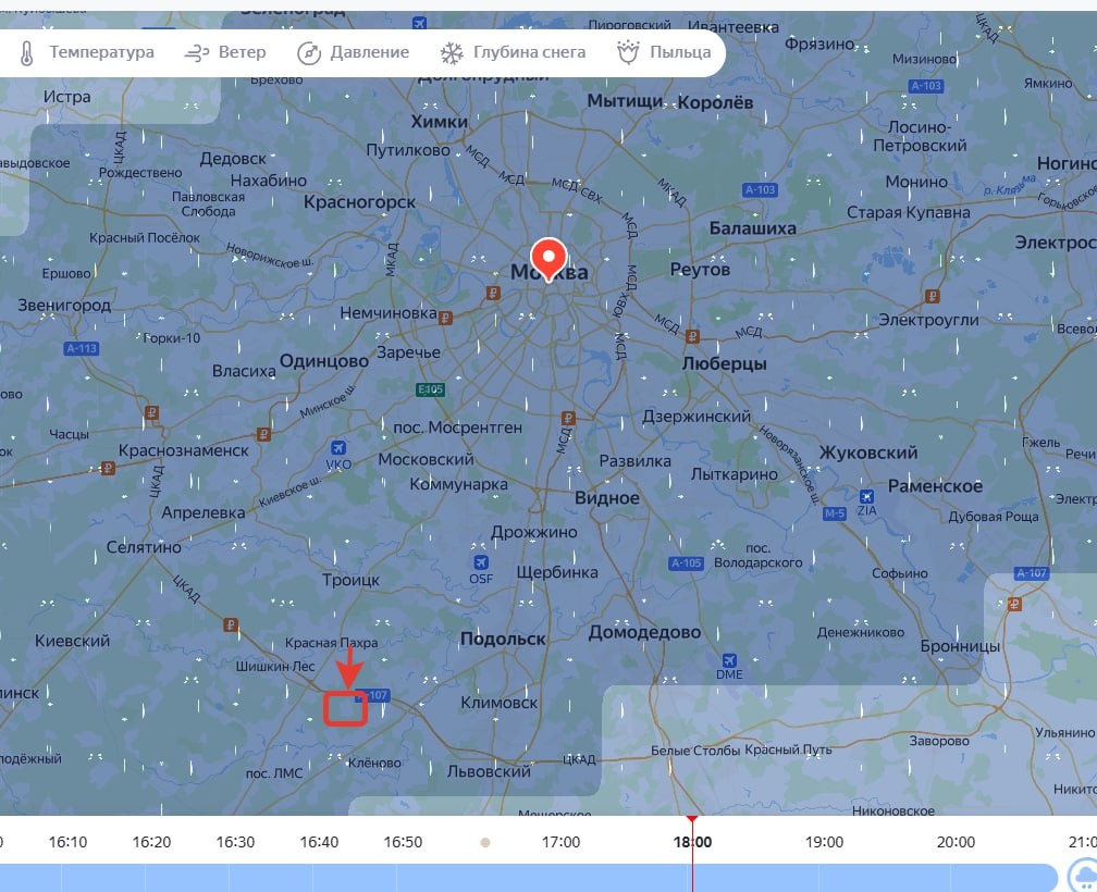 🌧 И о погоде: ливень обрушится на Москву после 15:00 и будет идти всю ночь, да с сильным ветром Надеемся, наши залезут в зимники и просидят в тесноте да не в обиде, прячась от апрельской мокроты. 🐶 Вот эта беленькая точка внизу в красном квадратике и есть наш Приют