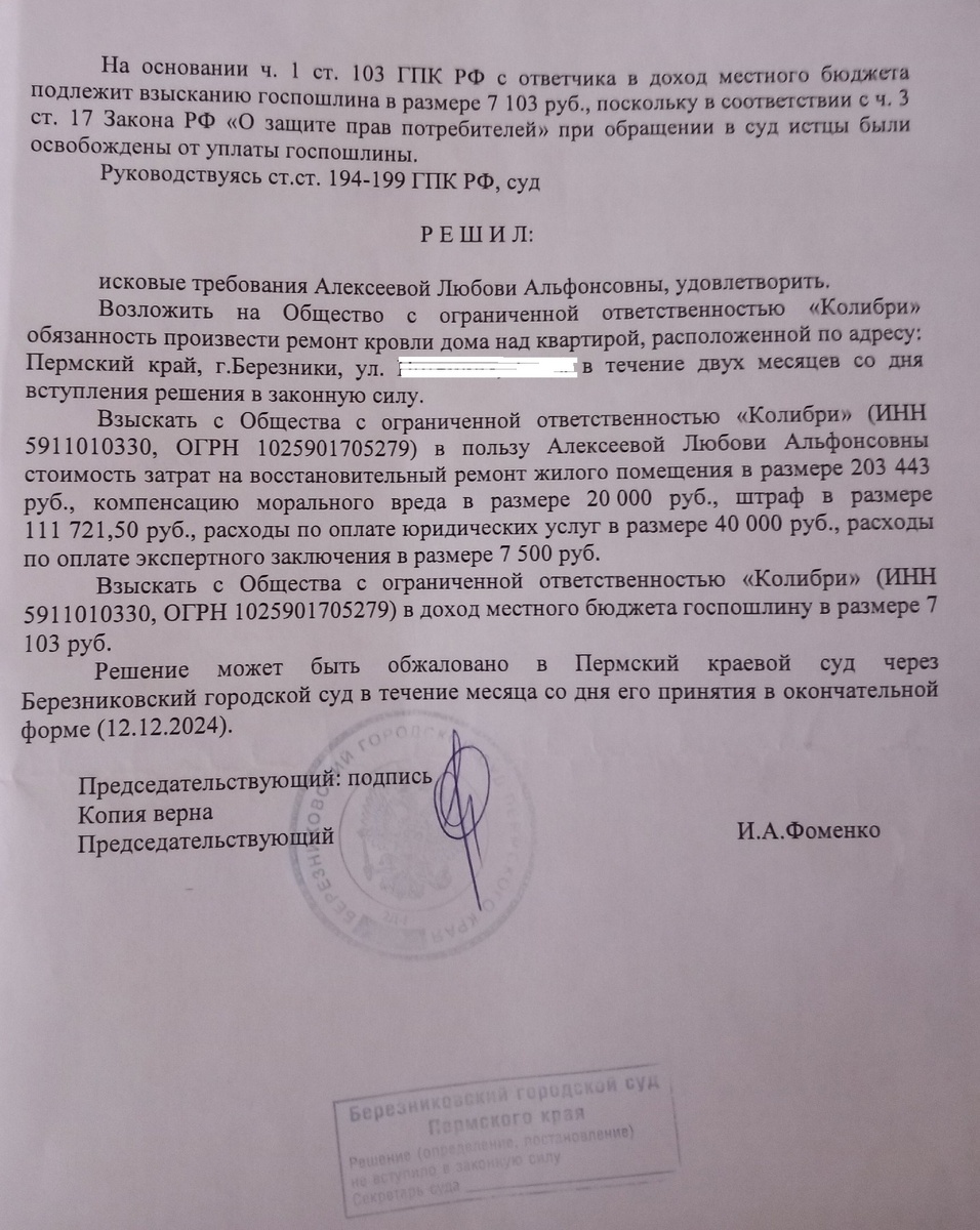 Ссылка, ДЕЛО № 2-5111/2024 (Березниковский городской суд):