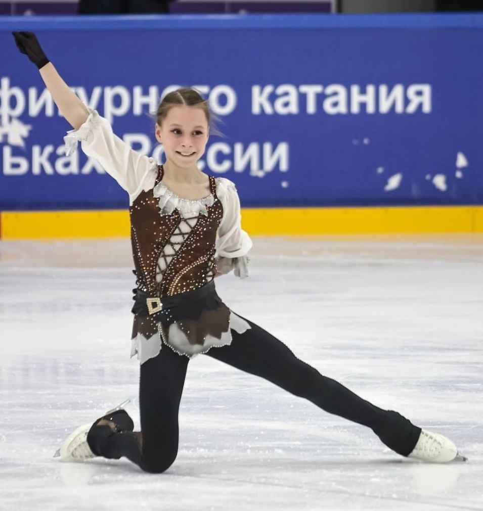 Мирослава Лезина. Тренер Оксана Булычёва. Великолепная программа! Мирослава мне напоминает юных Аделию Петросян и Надежду Пантелеенко. Классная игра в акценты! Глаза горят! И огненная программа! Всё же Оксана Михайловна знает как правильно огранять спортсмена.