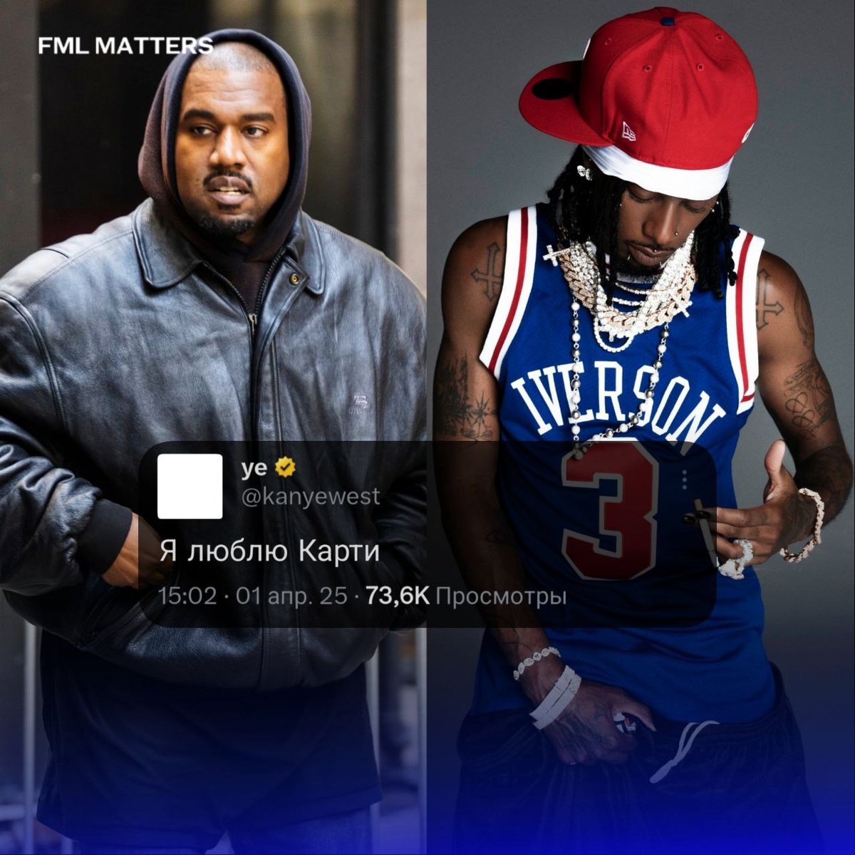 В ответ на пост ❗️ KANYE WEST ПРИЗНАЛСЯ В ЛЮБВИ К PLAYBOI CARTI! Об этом Йе заявил в Твиттере (Х). Первоапрельская шутка, или шиза, не ясно. 💀 FML MATTERS