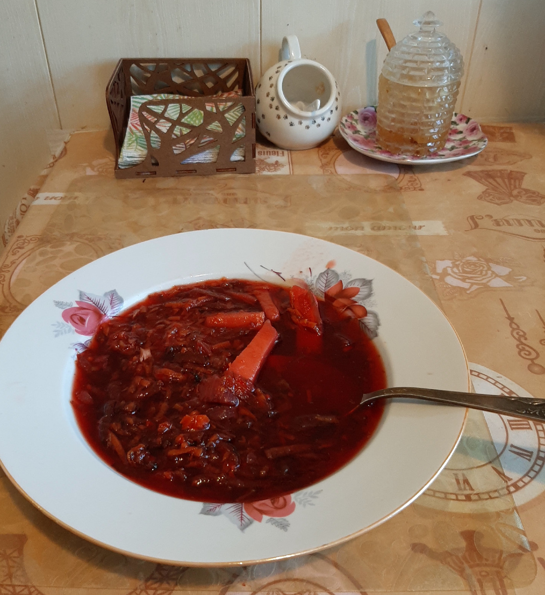 Борщ удался,, мясо хорошо свалилось, было мягкое и вкусное. Косточку и попозже удалила из борща и съела с неё остаточки мяса.