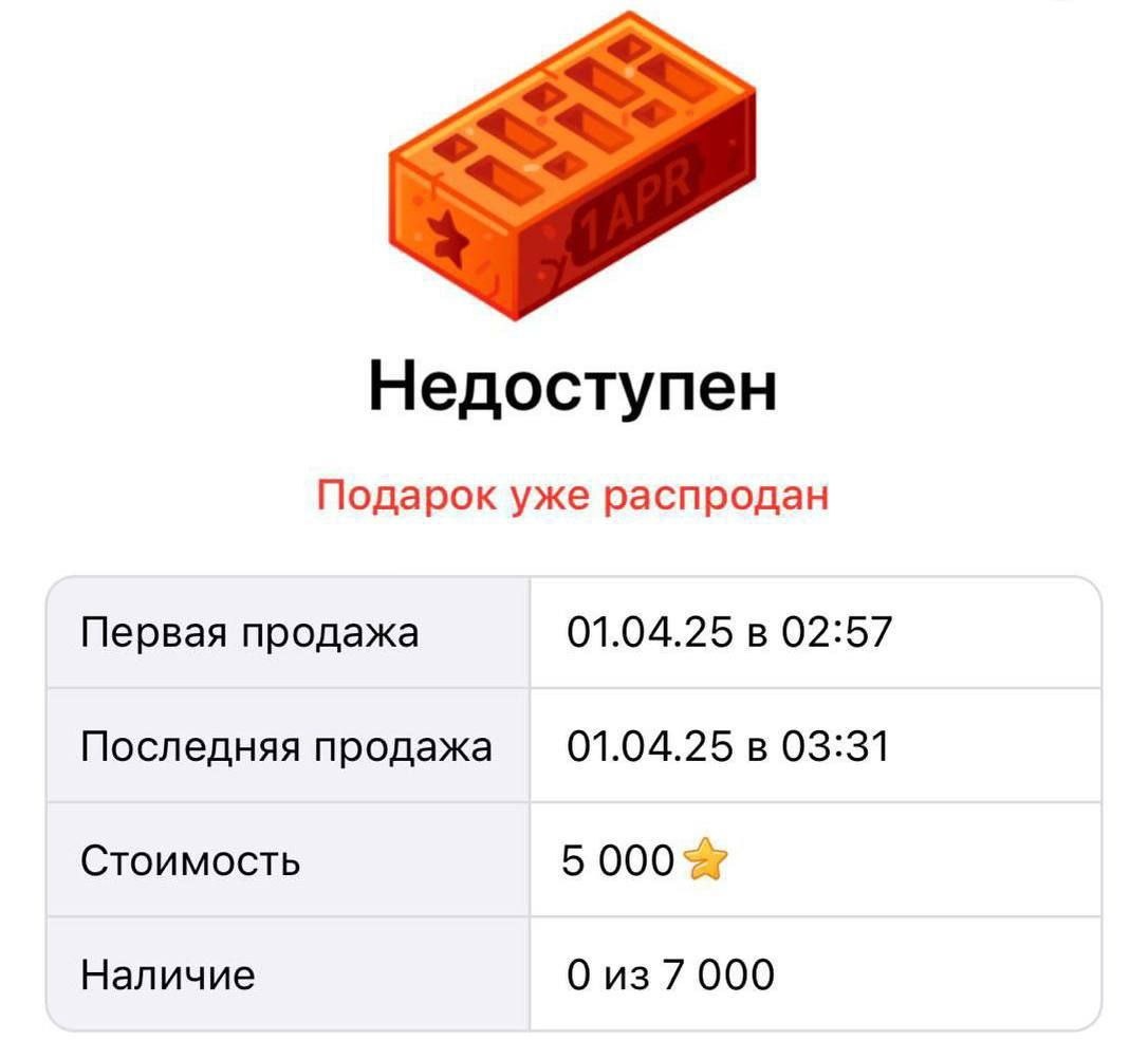 ₽100 млн на первоапрельской шутке заработал Павел Дуров. Создатель Telegram выпустил в соцсети суперэксклюзивный подарок — виртуальные кирпичи. Один такой кирпичик стоило 5000 звёзд (около 8000 рублей для пользователей Android или более ₽13 000 для владельцев iPhone). Все 7000 кирпичей разобрали за несколько часов. Хорошо смеётся тот, кто на этом ещё и зарабатывает...