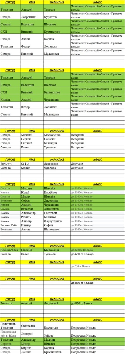 Смотрим свои данные, проверяем. (Зеленым оплачено) Классы 650 и 850 совсем пустые. Ждем заявок! P.s. Прошу обратить внимание❗️❗️❗️несмотря на то, что вы подали заявку, я приступила к ее обработке, прислала вам запрос на предоставление документов, но бОльшая часть предполагаемых участников предоставила пакет документов не полностью! Такая заявка НЕ считается принятой, имейте ввиду. Досылаем все документы и спим спокойно😀Всем добра и взаимоуважения❤️ Вся информация по участию 🛞 Подать заявку на участие ✍️ Купить спортивную страховку 💪