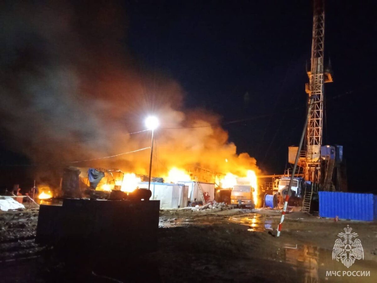 📍Место пожара - п. Среднеуранский, Оренбургская обл. Загорелась буровая установка.