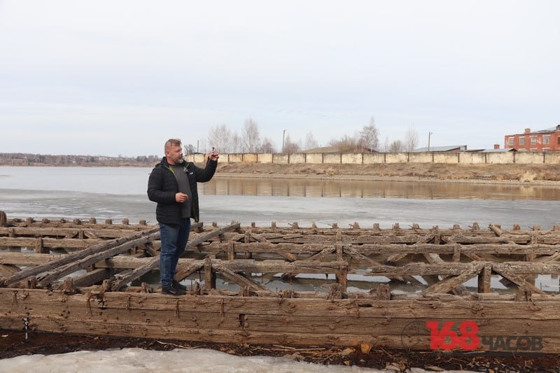 На обмелевшем дне Волги в Кинешме предстало старинное деревянное судно.