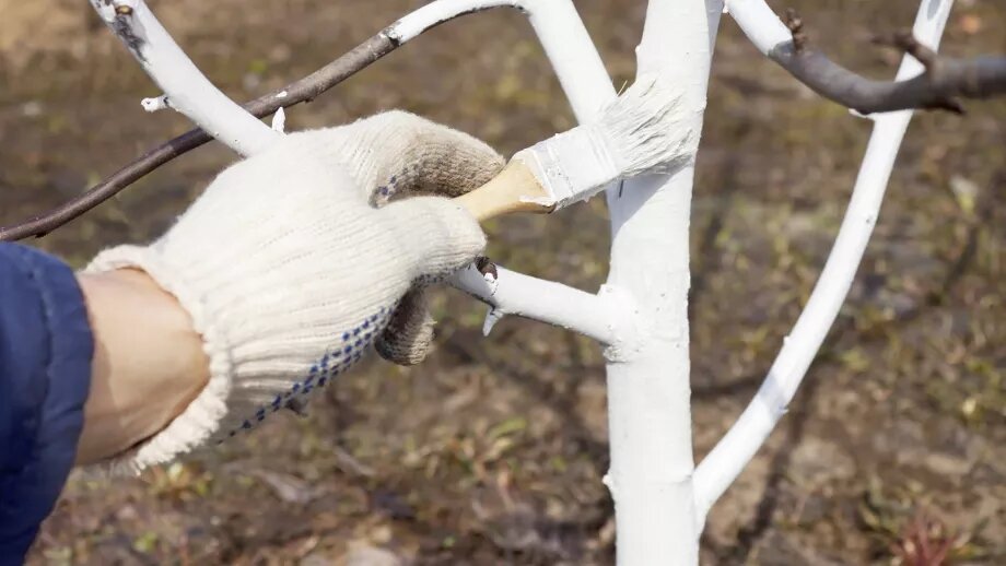 Побелка — важный шаг, который не стоит пропускать огороднику весной. Она защитит кору плодовых деревьев от вирусов и бактерий, а также от ультрафиолетовых лучей солнца. Не защищенная ветками часть ствола особенно уязвима к повреждениям.