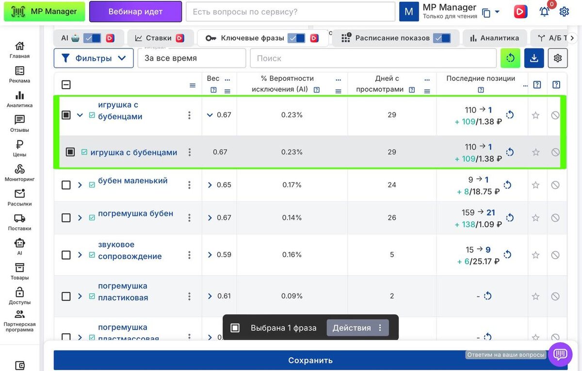 Теперь управлять рекламными кампаниями в MP Manager стало еще удобнее! Ключевые фразы и пресеты объединены в одной таблице с возможностью разворачивания вложенных данных.