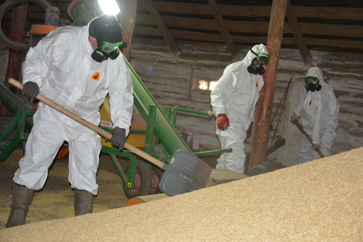 Когда мы приехали, работа кипела: Филгат Усеев, Марат Канзафаров и Рустям Кадыров трудились в полной экипировке и специальных респираторах. В таком режиме они проведут не один день. На очереди на протравку – 350 тонн ячменя и 100 тонн яровой пшеницы. В ближайшее время планируется обработать сою и горох, что позволит разнообразить посевной клин и снизить риски заболеваний.