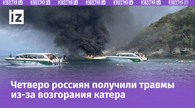 В Таиланде четверо туристов из России пострадали в результате возгорания катера около острова Майтон. Об этом 1 апреля сообщили в пресс-службе генерального консульства РФ в Пхукете. «В результате происшествия легкие травмы получили четыре россиянина, госпитализация им не требуется», — говорится в сообщении Telegram-канала генконсульства. Отмечается, что всего на судне находилось 33 туриста, из которых 26 человек — граждане России. На данный момент российское генконсульство находится в контакте с пострадавшими и местными органами, выясняющими причины случившегося. Ранее в этот день около острова Майтон в провинции Пхукет на юге Таиланда загорелся катер с туристами из России и Казахстана. Согласно данным издания MGR online, причиной пожара стал отказ двигателя.