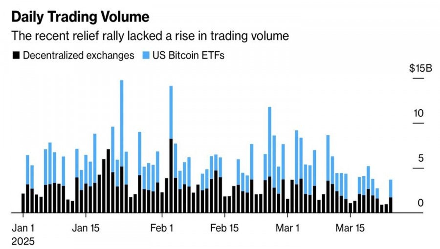 Низы не могут, верхи не хотят. Даже так называемые «умные деньги» не спешат покупать биткойн из-за комбинации неблагоприятных факторов. Вялая торговая активность, напряженная макроэкономическая обстановка и отсутствие восходящего импульса создают обстановку, известную на рынке как «ловушка для «быков». Вперед батьки в пекло не лезут крупные игроки, что уж говорить о планктоне?