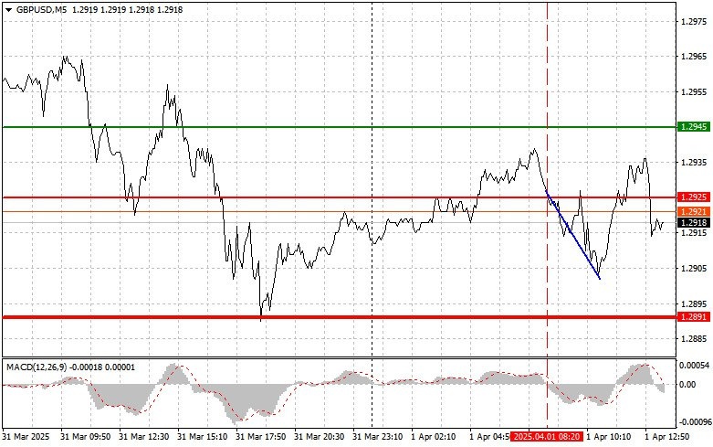 Тест цены 1.2925 пришелся на момент, когда MACD только начинал движение вниз от нулевой отметки, что стало подтверждением правильной точки входа на продажу фунта. В результате пара провалилась вниз на 20 пунктов, но до целевого уровня мы так и не дотянули.