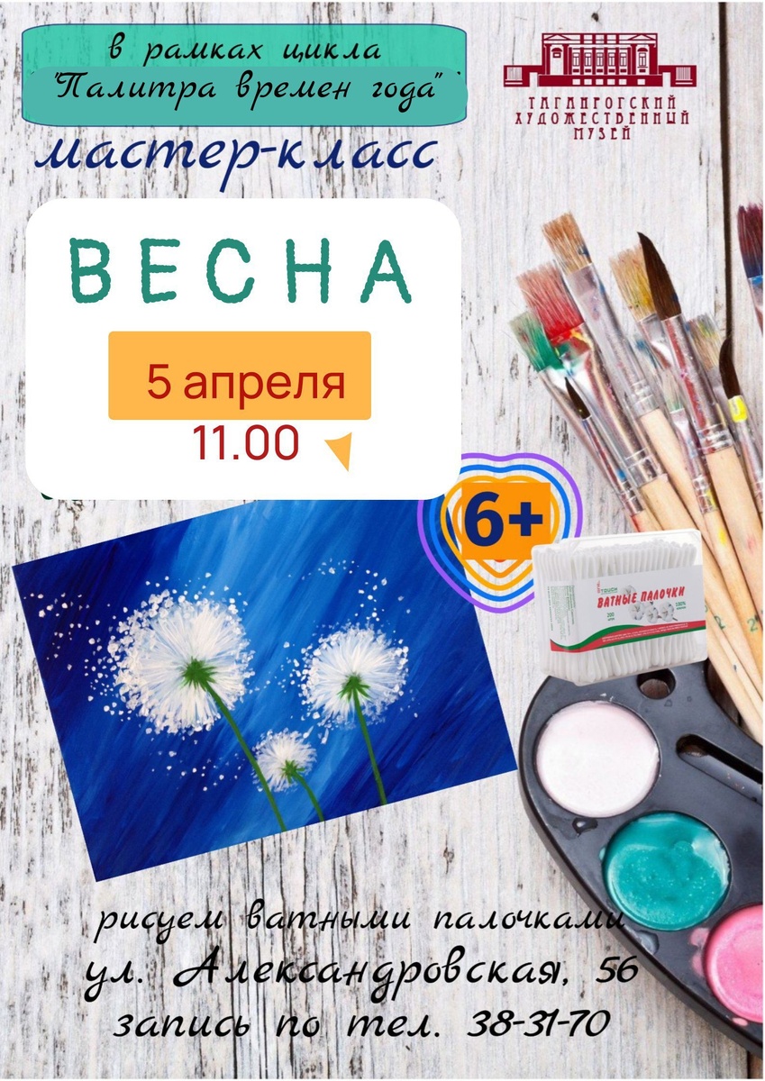 🌷🌷🌷Вот уже поднялись из земли острые листики тюльпанов, цветут подснежники, крокусы, ветреницы, вот-вот яркими солнышками расплескаются по первой зелени одуванчики... 🌞 Это значит, пора встречать весну, пора рисовать весну! 🎨 Дорогие юные художники! В субботу, 5 апреля, в 11.00 для вас проводится мастер-класс "Весна" из цикла "Палитра времен года". Вместе освоим интересную технику рисования ватными палочками. 😍Получится даже у самых маленьких и начинающих рисовать ребят. 🏛Ждем по адресу: ул. Александровская, 56 ☎️тел. 38-31-70