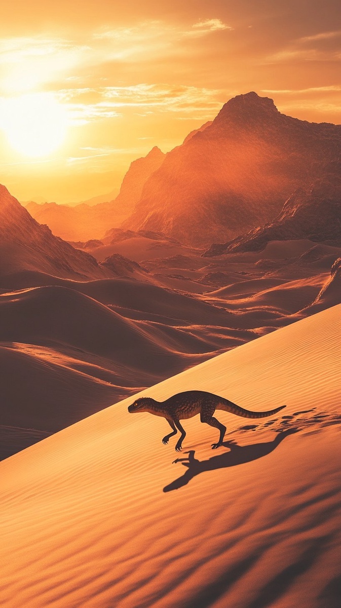 Создано на основе запроса: A small but resilient creature navigating endless desert dunes under a blazing sun, its body adapted to extreme