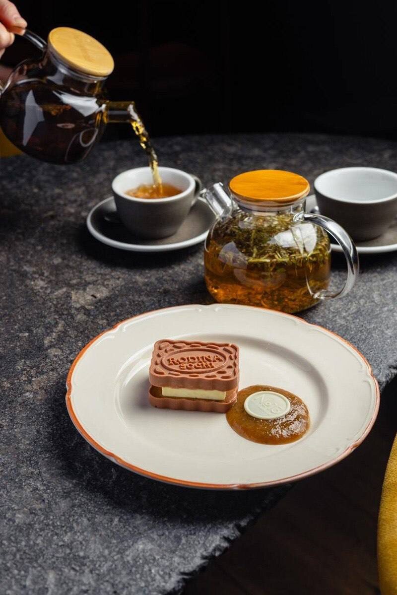 Моментальный телепорт в детство! Кто не любил юбилейное печенье с чаем? Попробовать авторскую интерпретацию со сгущенкой и фейхоа от клуба здоровья Rodina можно в Restaurant №13.