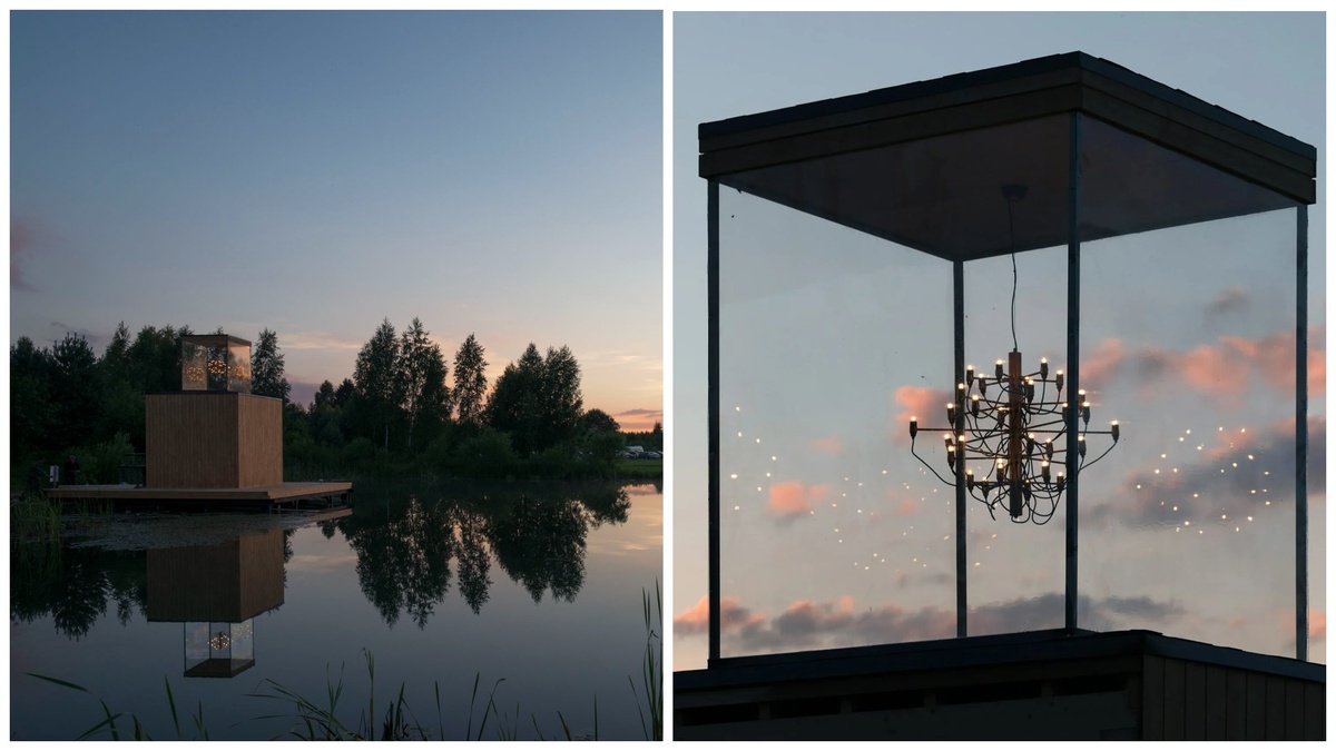 Представьте: на закате вы идете по тропинке и вдруг за деревьями загорается таинственный свет. Это не мираж — это дом, парящий над озером, созданный для фестиваля «Архстояние».