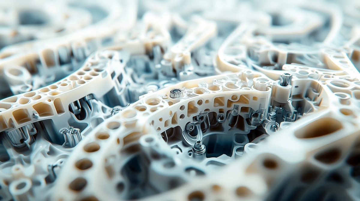 Создано на основе запроса: Polyphenylene Sulfide (PPS) material sample in the center, light beige or cream color with smooth surface, magnified view of molecular chains, industrial background with automotive parts like engine components and connectors, cool blue and gray tones, 3D artwork, hyper-detailed rendering, natural light, 8k --- Автоперевод: Образец материала полифениленсульфида (PPS) в центре, легком бежевом или кремовом цвете с гладкой поверхностью, увеличенным видом на молекулярные цепи, промышленный фон с автомобильными частями, такими как компоненты двигателя и разъемы, прохладные синие и серые тона, 3D-работы, гипер-заказное рендеринг, естественный свет, 8K. Как тебе генерация? 🤔 https://dzen.ru/id/65c0c65c86e4f837c27b24d7 #ИИ #AI #нейросеть #midjourney #art