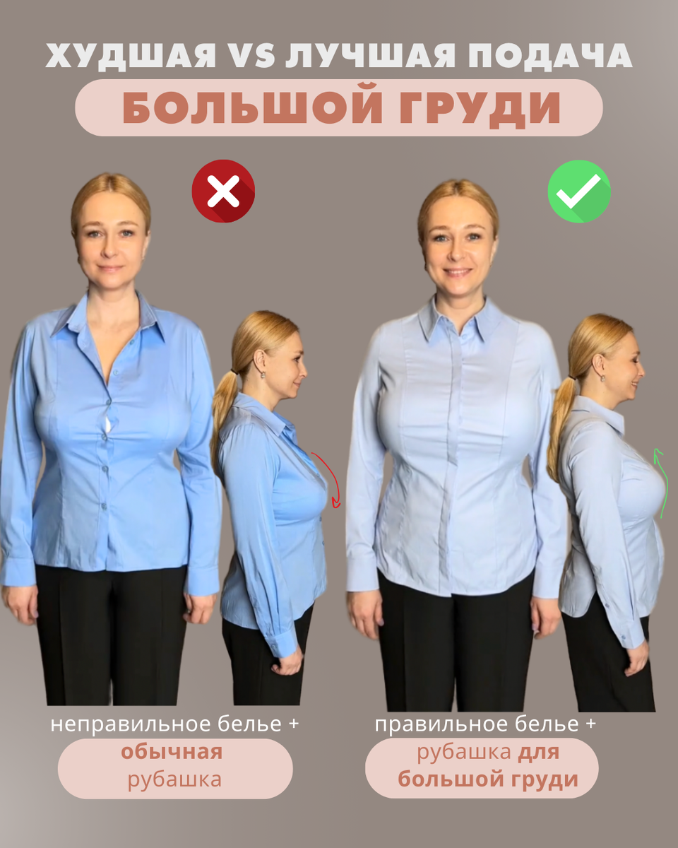 🤎 Наглядно! Как правильно подбирать белье и одежду на большой бюст, и что будет, если этого не делать 👉🏻