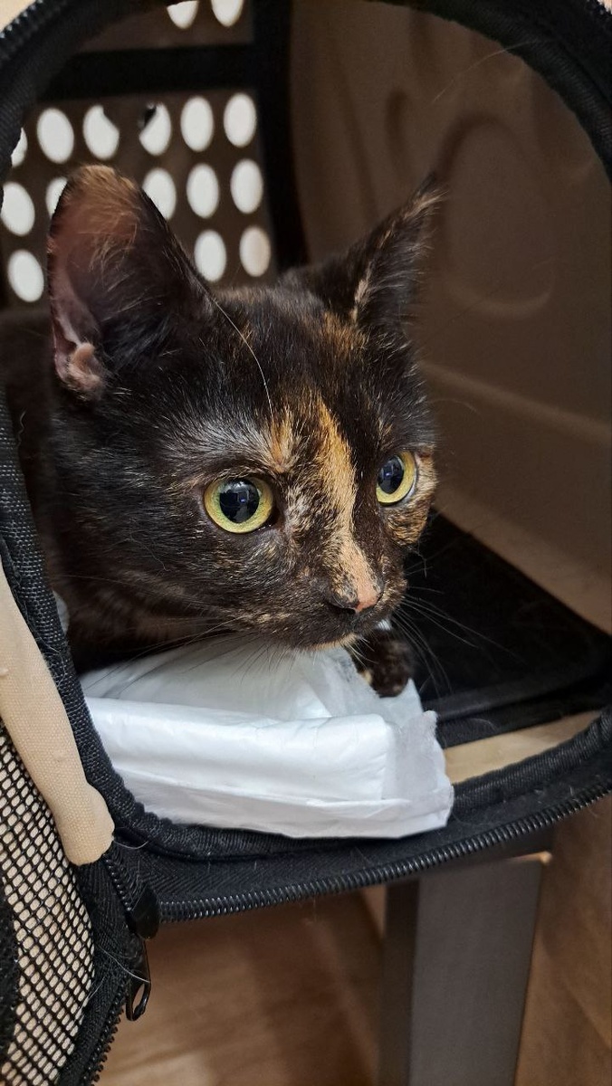 Черепашка из адской квартиры в Колпино уехала в семью второй кошкой. Просидела под ванной сутки. Только стала выходить понемногу. Сейчас уже освоилась)