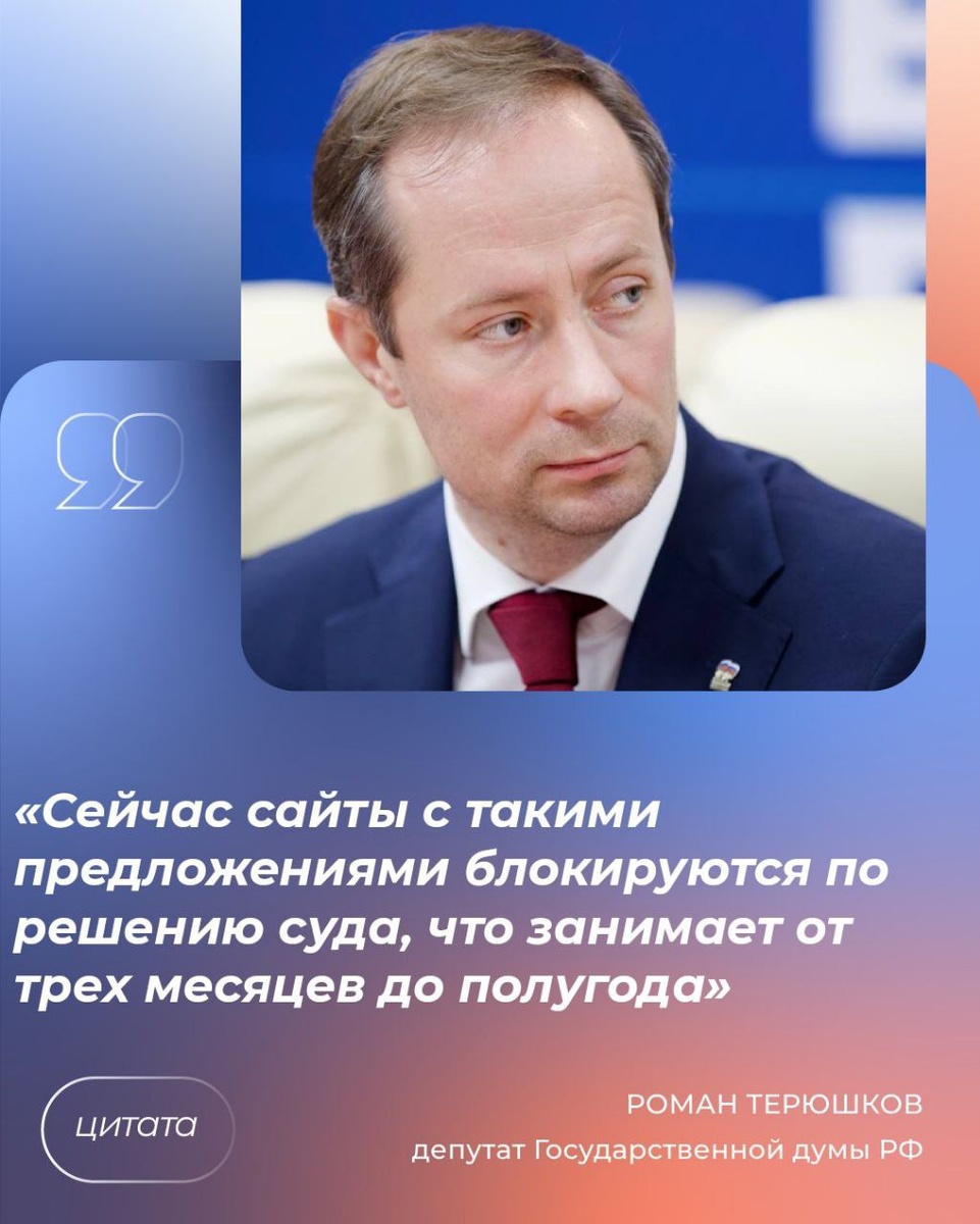 📝 Госдума в первом чтении приняла законопроект о блокировке интернет-ресурсов по продаже сигарет Документ станет важным шагом в борьбе с незаконным распространением вейпов, сигарет и других табачных изделий, особенно среди несовершеннолетних. «Инициативой предлагается установить быструю внесудебную блокировку страниц. Механизм внесудебной блокировки позволит ограничивать доступ к таким ресурсам всего за несколько дней», — пояснил депутат Госдумы фракции «Единая Россия» Роман Терюшков. Отмечается, что инициатива также направлена на повышение ответственности владельцев онлайн-платформ за контент, размещенный на их ресурсах. #ЕдинаяРоссия #ЕРЛюберцы #Подмосковье #Люберцы #ЕР50 👍 Подписаться | Единая Россия Люберцы