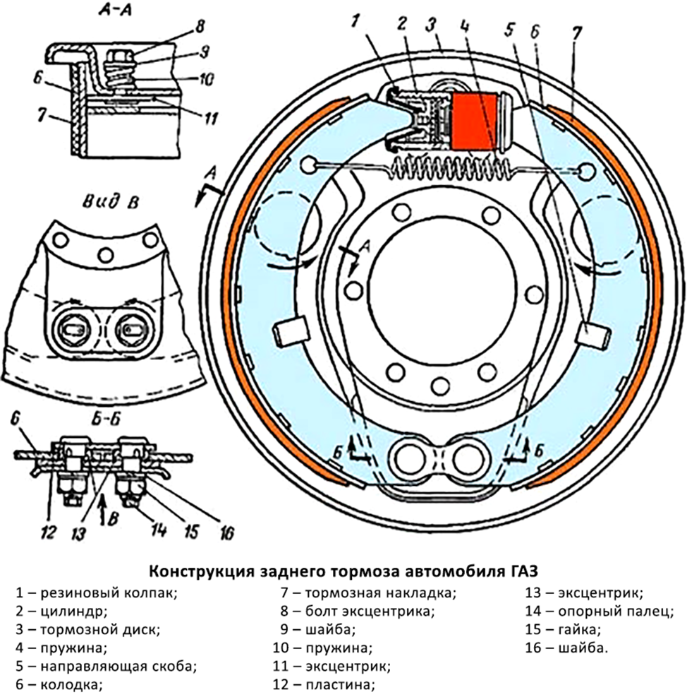 До середины 90-х годов прошлого века автомобили ГАЗ были оборудованы тормозными системами с барабанными механизмами на всех осях. Такое решение используется и в современных среднетоннажных грузовиках ГАЗ-3307, 3308 и 3309. В 1994 году началось производство первых «ГАЗелей» (ГАЗ-3302), где на передней оси применялись дисковые тормоза, а на задней — барабанные. Эта схема сохранилась и в последующих моделях «ГАЗелей», включая актуальные серии «Бизнес» и NEXT, а также в «Волге» ГАЗ-3110 и ее модификациях. Однако ГАЗ-3310 «Валдай», запущенный в производство в 2004 году, был оснащен дисковыми тормозами на всех колесах, как и современные модификации ГАЗон NEXT. Они включают в себя детали двух типов: Оба типа барабанов имеют внутренний диаметр 280 мм, но отличаются от легковых аналогов конструкцией: они содержат цилиндрическую и конусную части с отверстиями на бурте. Барабан для «ГАЗелей» оснащен шестью отверстиями под шпильки, тремя крепежными и тремя резьбовыми сервисными отверстиями. В бара