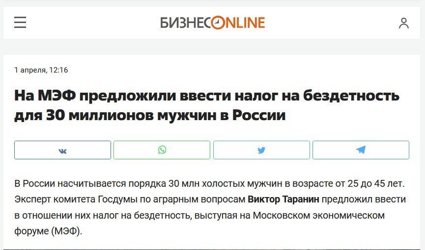 Налог на бездетность только для мужчин = дискриминация мужчин.