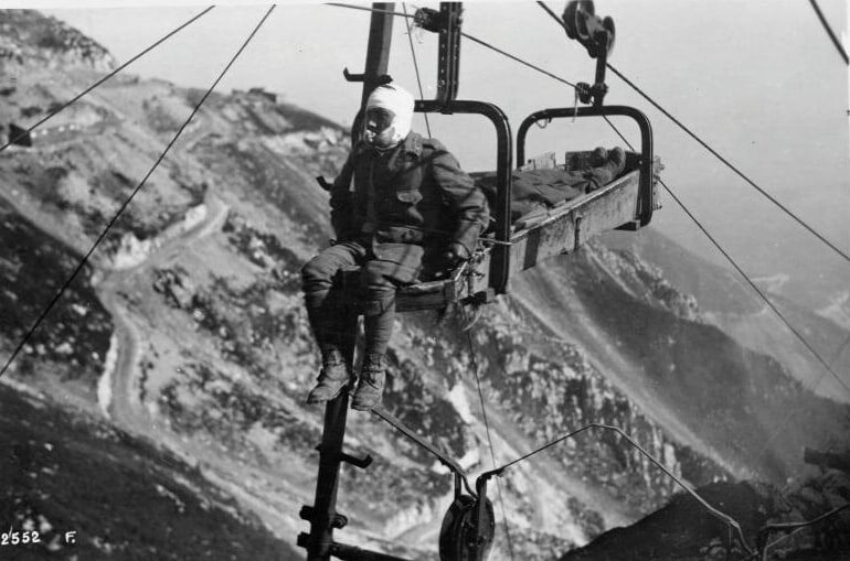 Итальянские раненые во время транспортировки в горах, третья битва при Монте-Граппе, 1918 год