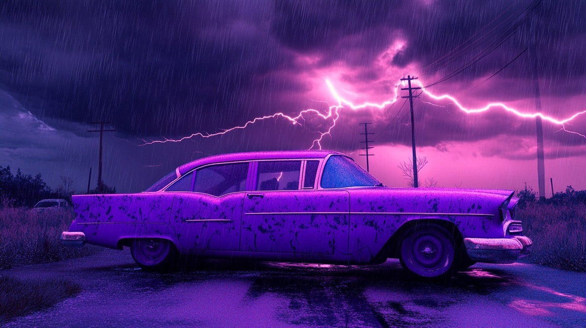 Создано на основе запроса: A purple pajama car in lightning