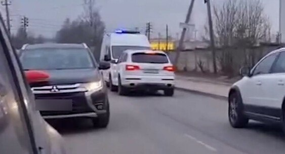 В Ленобласти на видео попало, как Audi перегородил проезд скорой с мигалками