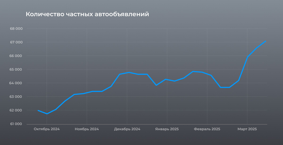 Аналогичная ситуация на рынке автомобилей от компаний — конец марта уже превысил рекорды прошлого года. При этом сезонные колебания количества предложений от компаний не такие значительные, как от «частников».