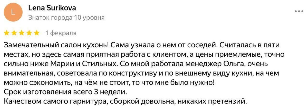 Отзывы заказчиков о сотрудничестве с нами🙌 Когда отзывы искренние и честные, это видно сразу. Прочтите их и поймете всё сами 📲 У нас, в RIKI Kitchen рейтинг 5.0 на яндексе и реальные, очень душевные отзывы наших клиентов, которые никак не подделать😉 Мы берем весь процесс производства вашей кухни на себя, вам нужно только написать нам✍️ И с момента первого обращения до установки вашей кухни у вас дома - мы с вами на связи постоянно! Наши квалифицированные дизайнеры выслушают все ваши пожелания и предложат несколько вариантов решений! А специалисты, которые приедут устанавливать вам кухню, выполнят профессиональную настройку фурнитуры и установку всех комплектующих, и оставят после себя чистоту и порядок😊 Процесс разработки, производства и установки вашей кухни - всегда будет вызывать у вас только приятные воспоминания❤️А ваша кухня будет радовать вас долгие годы! Напишите прямо сейчас в @RiKi_kitchen “Нужна кухня” и получите готовый проект в видео формате и предварительную сто
