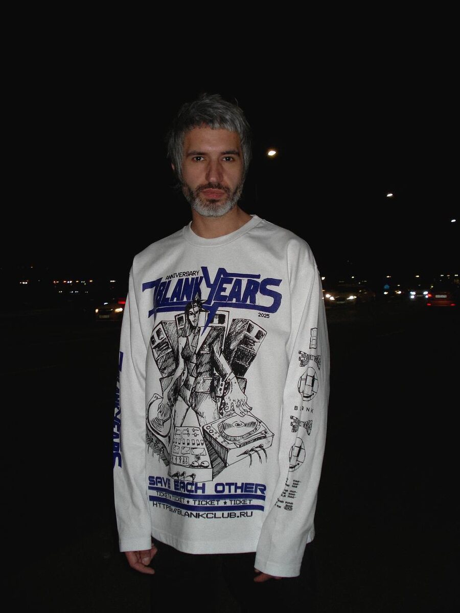 В коллекции — четыре предмета. Футболку и лонгслив создал художник и графдизайнер Shulya, который, традиционно вдохновляясь 90-ми, соединил эстетику той эпохи с визуальным кодом Blank и важными для нас датами.