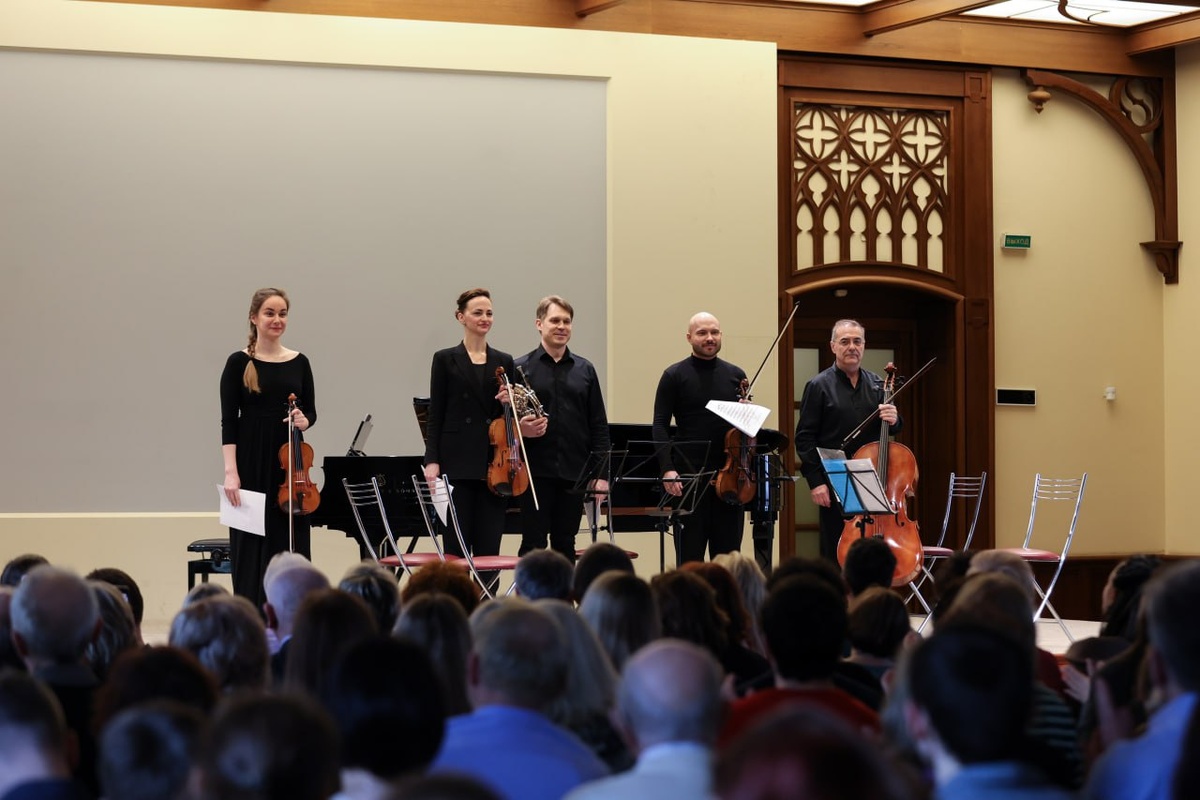 Вместе с художественным руководителем Российского национального оркестра Александром Рудиным музыканты исполнили камерные сочинения Моцарта.