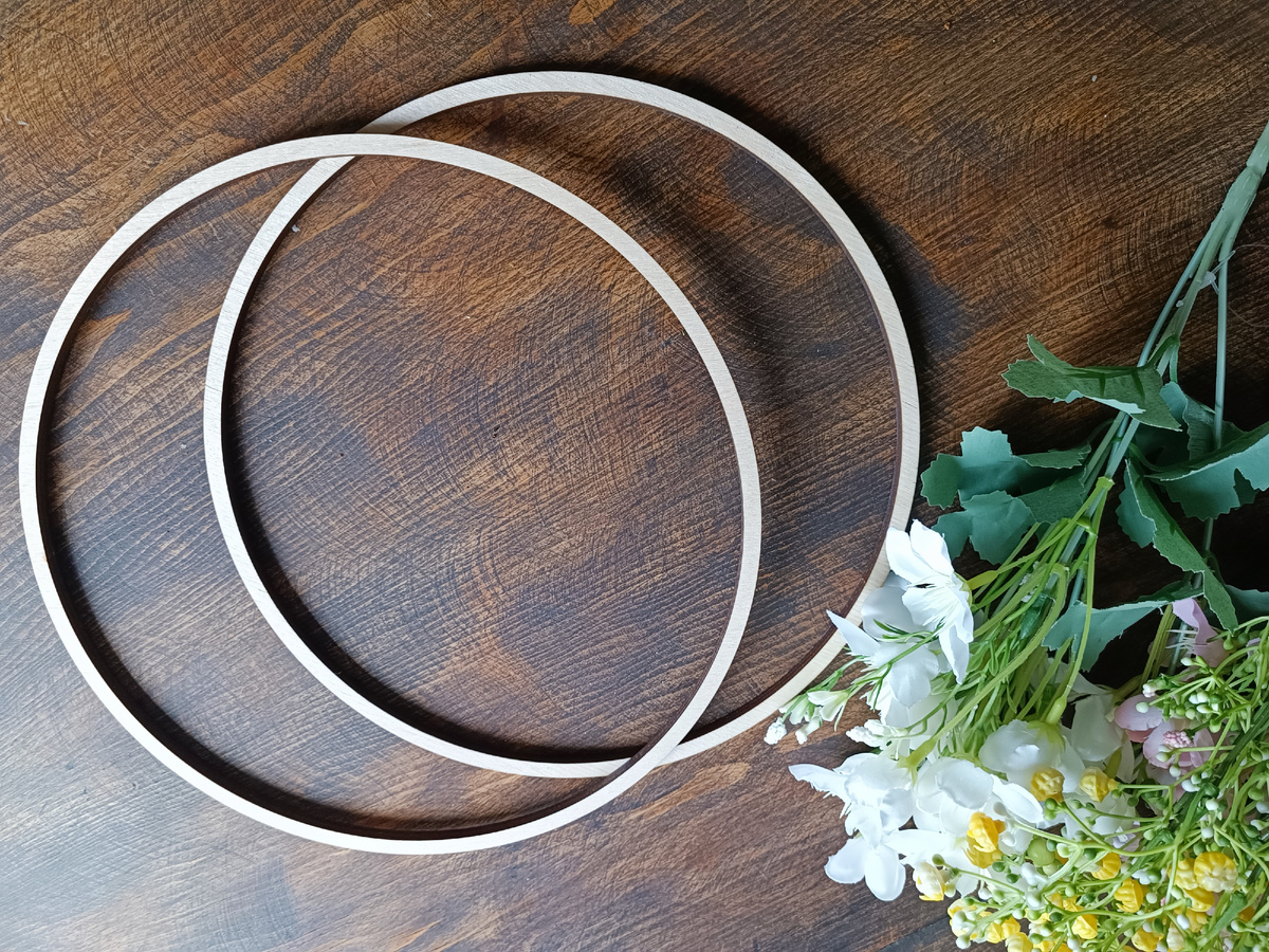 Я давно перестала заморачиваться со сложно-сочиненным, чем быстрее и проще - тем лучше. Так что сегодня покажу идею очень простого весеннего декора, который я сделала для детской буквально за час. Не считая того времени, пока сохла краска. Собрала, как обычно, из того, что нашлось в доме. А нашлись у меня два фанерных круга - остались с январского мастер-класса, когда дети делали мобили с балеринами. И кучка искусственных цветов - из Фикс Прайс и не очень удачная покупка в виде мимозы с ВБ. О искусственных цветах и их использовании в доме недавно подробно рассказывала на канале👇 Мне захотелось поиграть на контрастах и сделать имитацию грубого железа, чугуна, который бы оттеняли нежные цветы. Сначала я скрепила кольца между собой горячим клеем - в будущем планирую использовать их для других сезонных композиций. Для имитации чугунной поверхности я намешала шоколадно-коричневый оттенок акриловой краски, и добавила в неё соду для фактуры. Консистенция должна получиться как густая