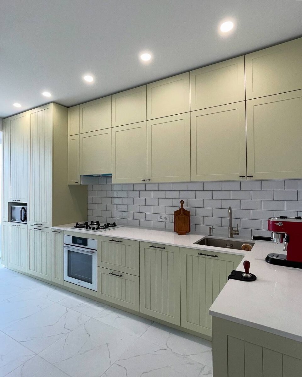 Еще одна потрясающая кухня для наших заказчиков с изысканным вкусом❗ На такой кухне хочется не просто собираться за ужином всей семьей или с друзьями, на ней хочется жить! Просто посмотрите и убедитесь в этом сами. ✅Длина 4384*1760мм ✅Фасады в матовой эмали (ncs s 1510-g80y) - фрезеровку изготовили по желанию заказчика ✅Шикарные ручки фирмы Decora ✅Фурнитура Blum ✅Подсветка над рабочей зоной ✅Гигиенический поддон в базе под мойкой (не забывайте его использовать) 💰Стоимость данной кухни 317800р. Хотите рассчитать стоимость такой кухни по Вашим размерам❓ 📩Присылайте проект или размеры кухни нам в сообщения А также записывайтесь на замер ☎️ 89278821585 💬 @kuhni_geometria