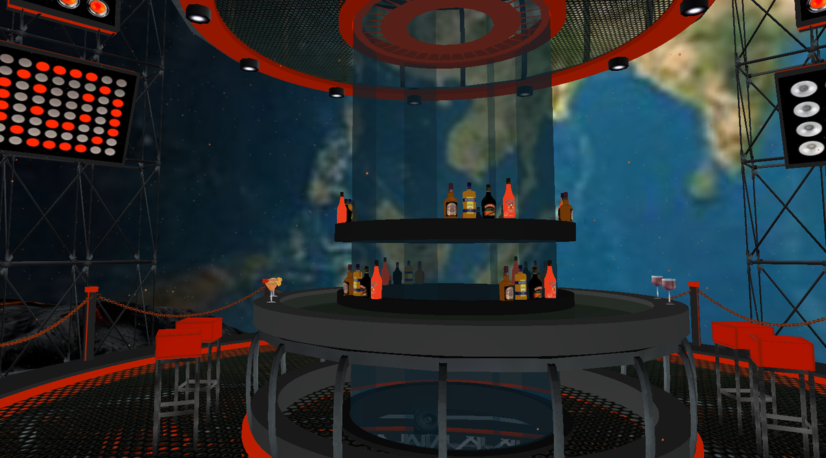 В клубе царит загадочный полумрак с переливами красных и тёмных тонов, создавая эффект бушующего вулкана. Подиумы для танцев, приглушённый свет и тени, играющие на стенах, делают пространство завораживающим и манящим.