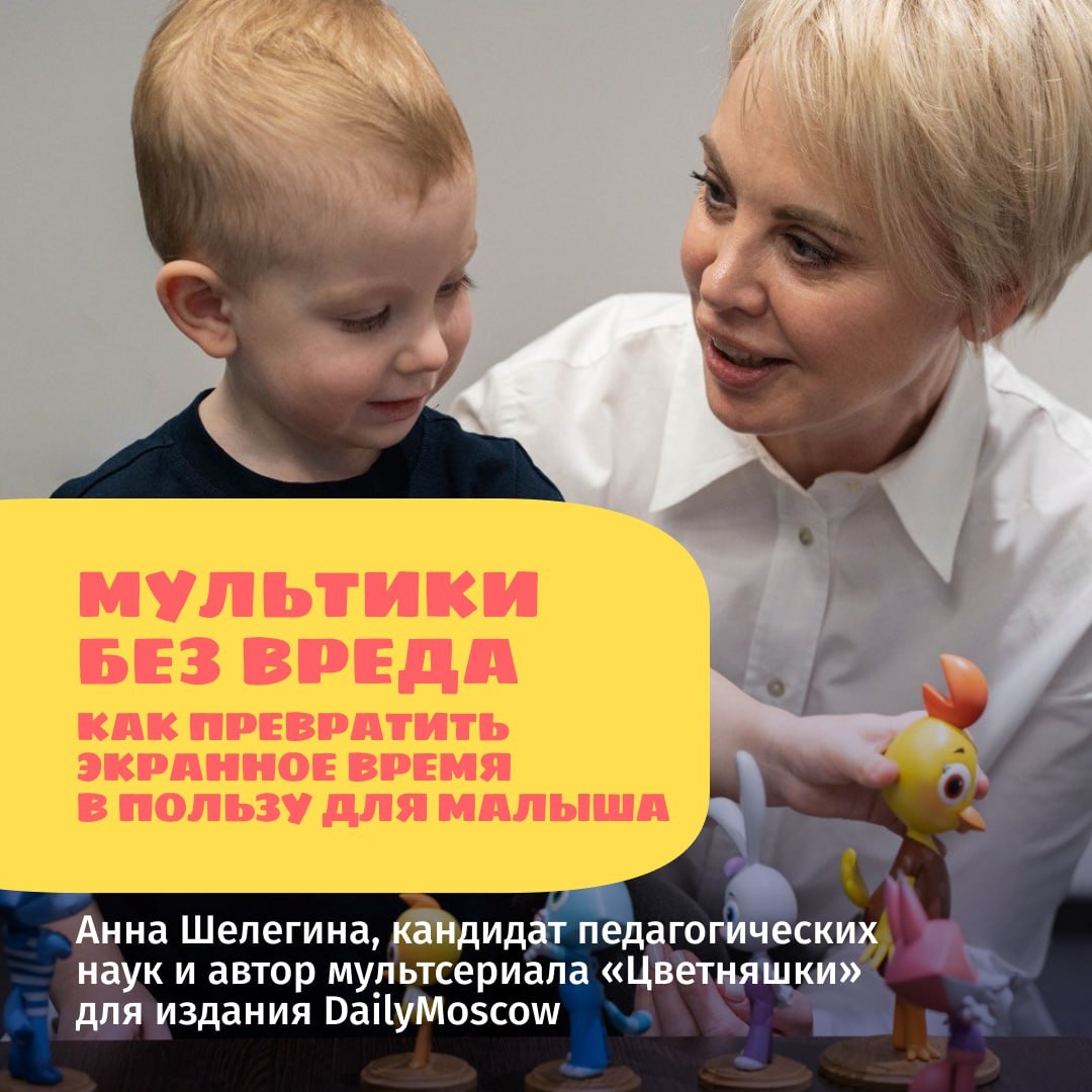 🙅♂️ Мультики — это вред? А вот и нет! Если использовать их правильно, они могут стать настоящим инструментом развития. Анна Шелегина, кандидат педагогических наук, сценарист и автор Цветняшек, рассказала изданию DailyMoscow, как сделать экранное время полезным: 💥 как отличить полезный мультфильм от «видеошума» 💥 какие вопросы помогут разговорить «молчуна» 💥 зачем смотреть мультики вместе и что это даёт в будущем 💥 как переносить сюжеты из экрана в реальную жизнь — и зачем это нужно Очень интересная, умная и практичная статья. Если вы хотите, чтобы ваш ребёнок рос не только любознательным, но и умел говорить о чувствах, дружить, задавать вопросы и быть уверенным в себе — обязательно прочитайте. 🔥 Читать статью полностью 🔥