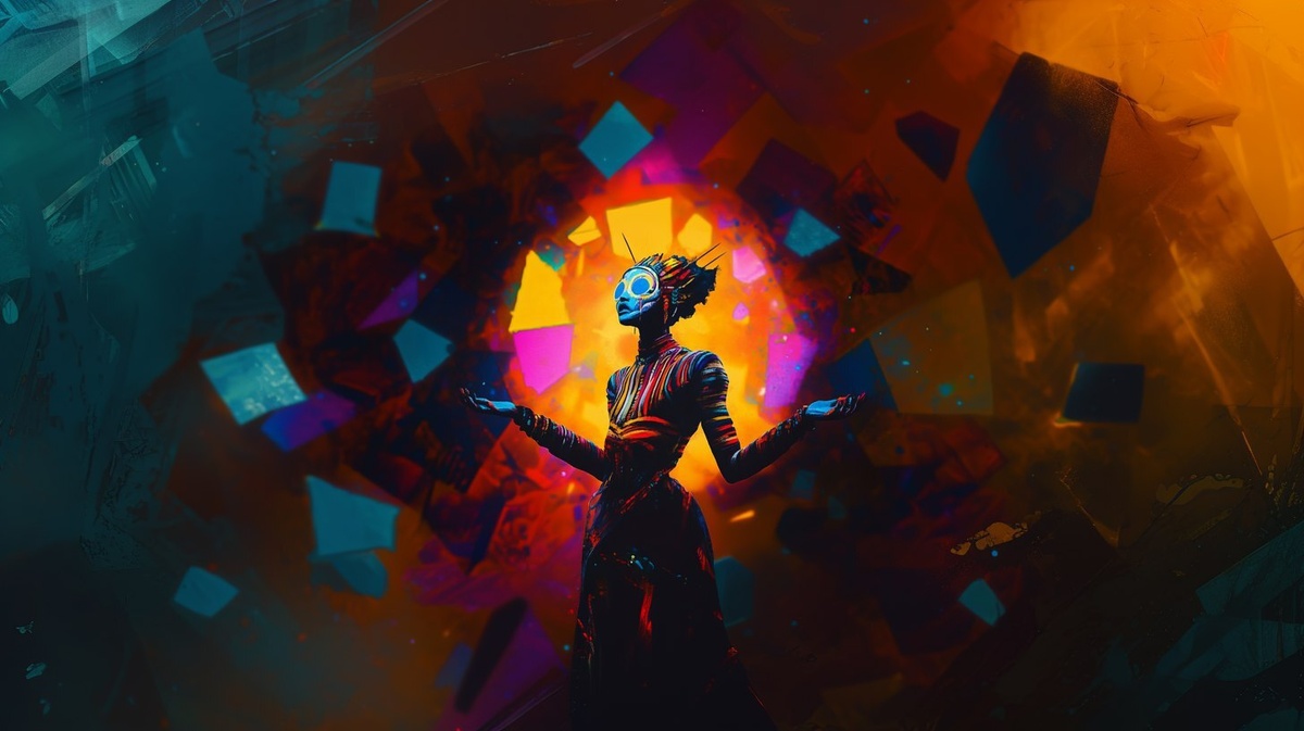 Создано на основе запроса: character Funky Musician on stage infront of Geometric shapes become living, dancing beings --- Автоперевод: Персонаж Funky Musician на сцене Infront of Geometric Formes становятся живыми, танцующими существами Необычно вышло? 🤔 https://dzen.ru/id/65c0c65c86e4f837c27b24d7 #ИИ #AI #нейросеть #midjourney #art