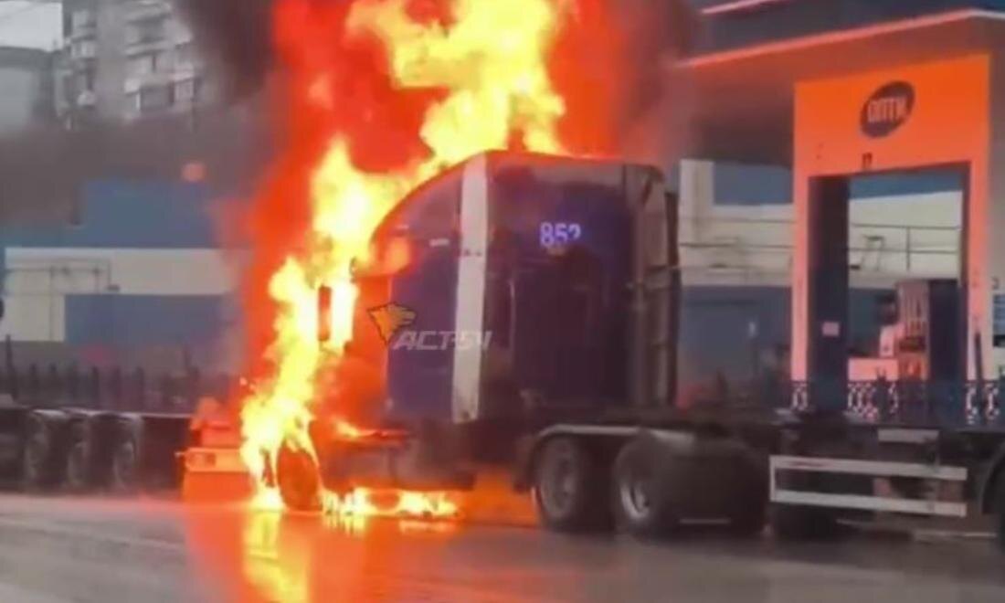 Пожар произошёл вечером 1 апреля около автозаправочной станции на улице Ипподромской. Пламя охватило кабину тягача марки Scania. Проезжающие мимо водители переживали, что огонь полыхает совсем недалеко от бензоколонок.