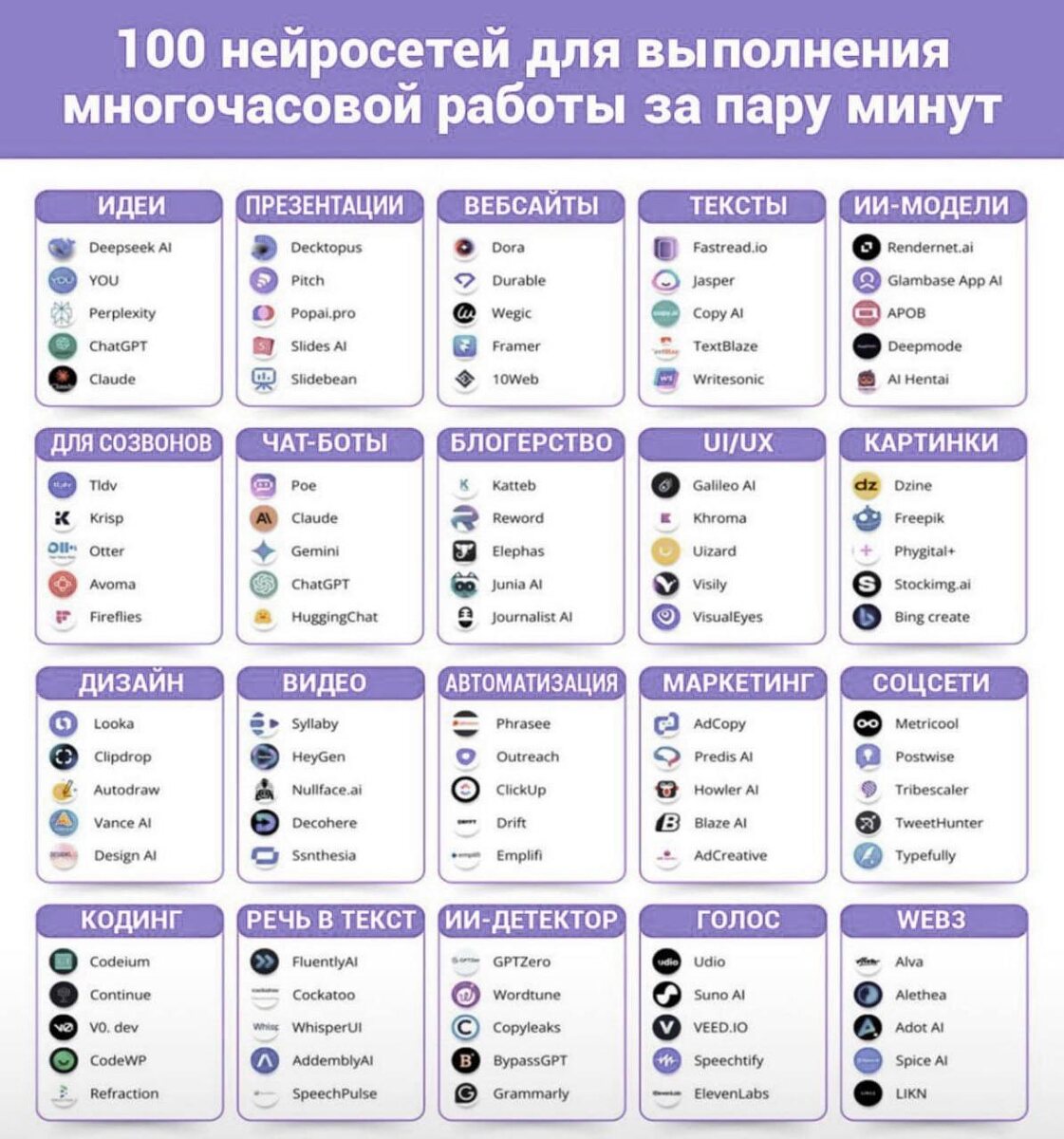Реддиторы собрали 100 нейросетей на все случаи жизни: от генерации резюме до поиска смысла в жизни (удачи). Машины уже умеют почти всё. Осталось научиться пользоваться — пока они нас не уволили.