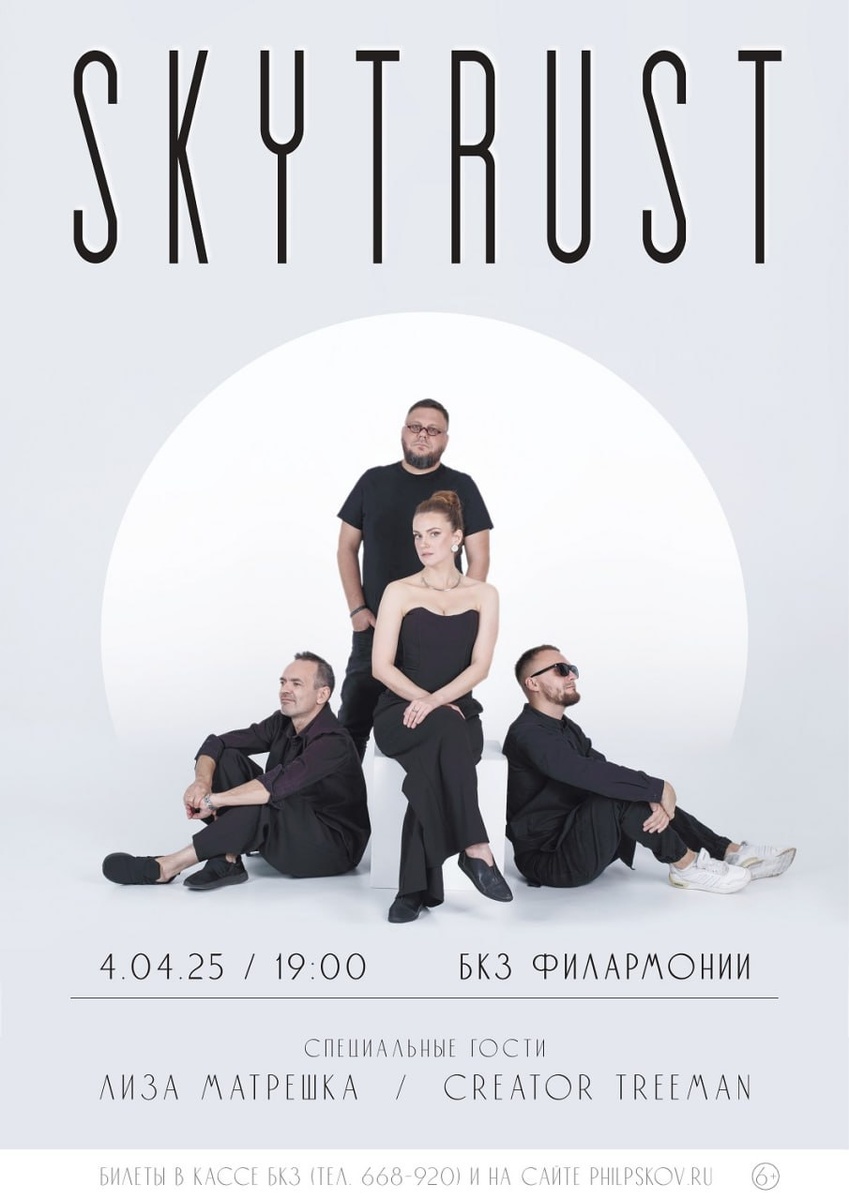 SKYTRUST — электронно-музыкальный проект из Пскова Александра Бояркова 🎼 🎧 Их музыка — это смесь разных электронных стилей, атмосферных синтезаторов и живых инструментов, таких как барабаны, труба, гитара и вокал. Живые выступления проекта - это не только качественный и красивый звук, но и интересные световые и визуальные решения 🪩 📌 Также на концерте будут выступать специальные гости — Лиза Матрёшка и Creator Treeman. 📆 04 апреля в 19:00 📍 БКЗ Филармония 🎟 Билеты Оставайтесь с нами #НашаПсковскаяобласть #концерт