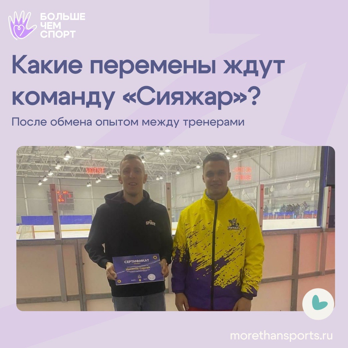 Думаете, что только игроки и новички в командах по следж-хоккею учатся чему-то новому? 🤔 А вот и нет! Тренеры тоже не перестают учиться и обмениваться опытом! 📚✨ Вот, к примеру, совсем недавно тренер команды «Сияжар» (г. Краснослободск) — Сергей Интяков — отправился в командировку в г. Самару, где прошел стажировку в команде «Титан». 🏒 Там он смог увидеть, как работают другие команды и познакомиться с новыми эффективными методиками и подходами к тренировкам. 💪 Находясь в команде «Титан», я получил новый опыт, который несомненно поможет внести новшества в программу тренировки нашей команды, поделился Сергей. 🌟 Листайте карточки, чтобы узнать больше о том, какие нововведения ждут команду! 📲🔍 Проект реализуется при поддержке благотворительного фонда Сбера «Вклад в будущее».