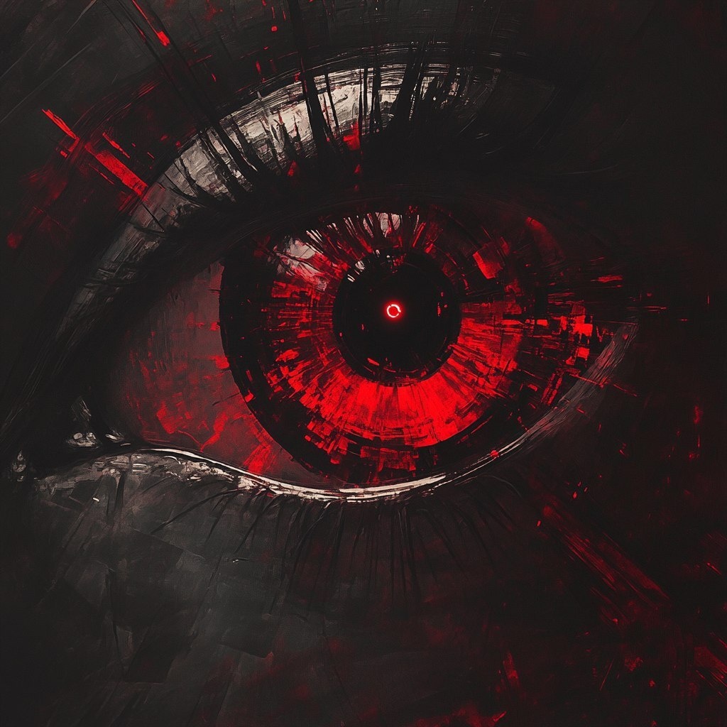 Создано на основе запроса: an abstract eye, GANZ:O movie aesthetic, black with red reflects on it