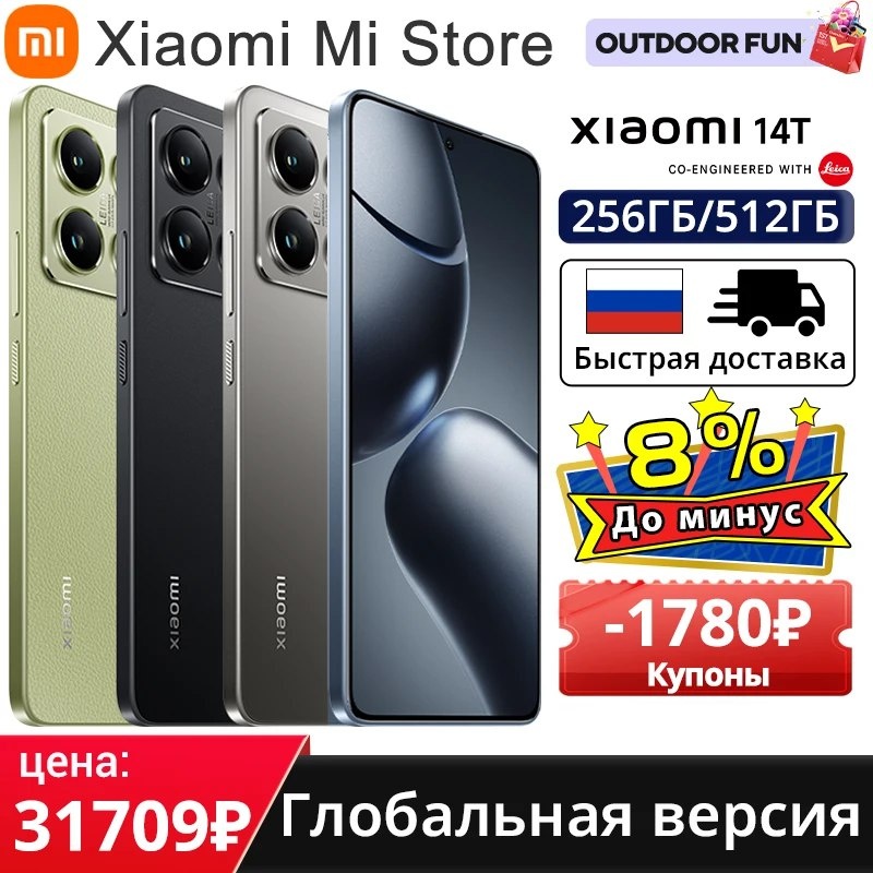 Xiaomi 14T телефон, 12 Гб/256 ГБ, 12 Гб/512 ГБ, черный/серый/синий/зеленый цвет