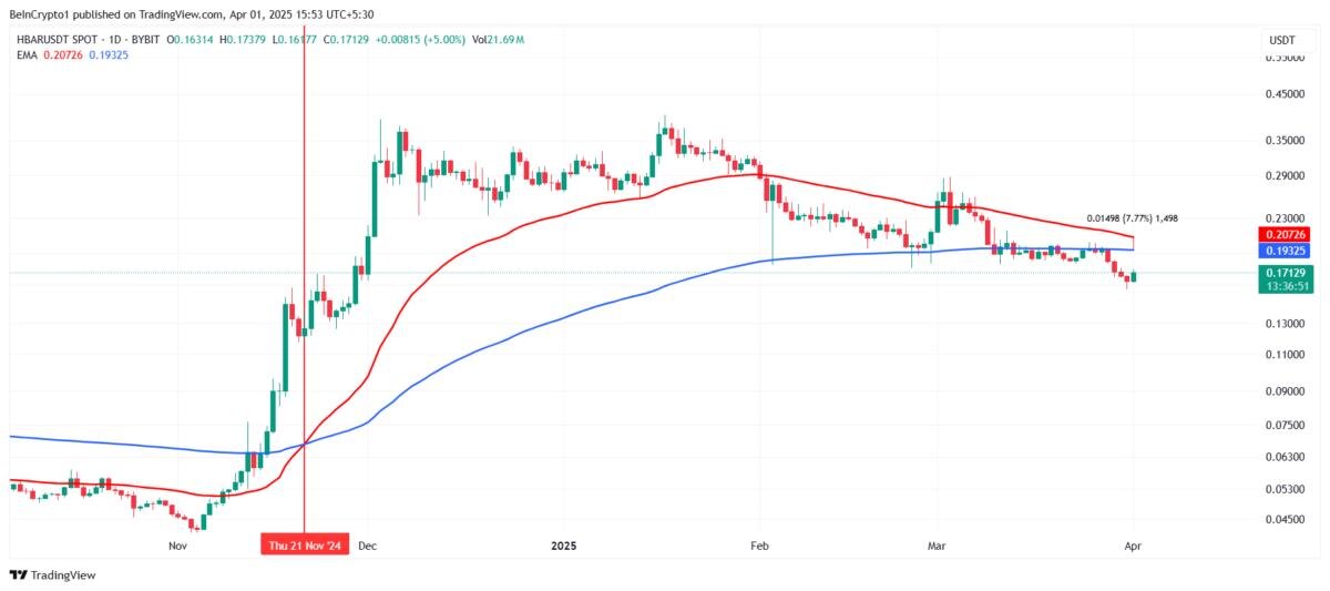 На графике токена Hedera (HBAR) может сформироваться «крест смерти