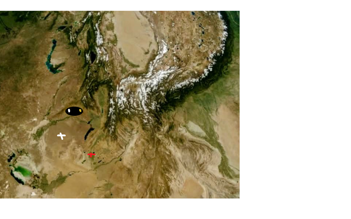 Алтын Окюз (Золотой Телец) — культовое животное туркменских племен огузов (окюз). Название племени происходит от латинского слова ох (окс), означающее бык .Окюз —название быка на языках закавказских татар и туркмен. Угез — на башкирском и на татарском. Созвездие Тельца (лат. Taurus, армянск. Tavar) - небесный символ этого животного. От латинского слова ''taurus'' происходит название тюркского (taurq) этноса. На снимке - скульптура быка, образованная руслами рек Сырдарья, Амударья и Чу. На морде животного располагается Аральское море. Красным крестом отмечен город Бухара. Название города указывает на созвездие (ар) Быка (турецк. буха, буга). Аму - предводитель в стаде быков у народов Туркестана. Между рогами животного располагается Восточный Туркестан, ареал проживания уйгур - тюркский коренной народ. Таков Мировой порядок, установленный Богом. Великий Туран - обширная территория, простирающая от восточного берега Каспийского моря до Монголии, Включение в этот проект территорию