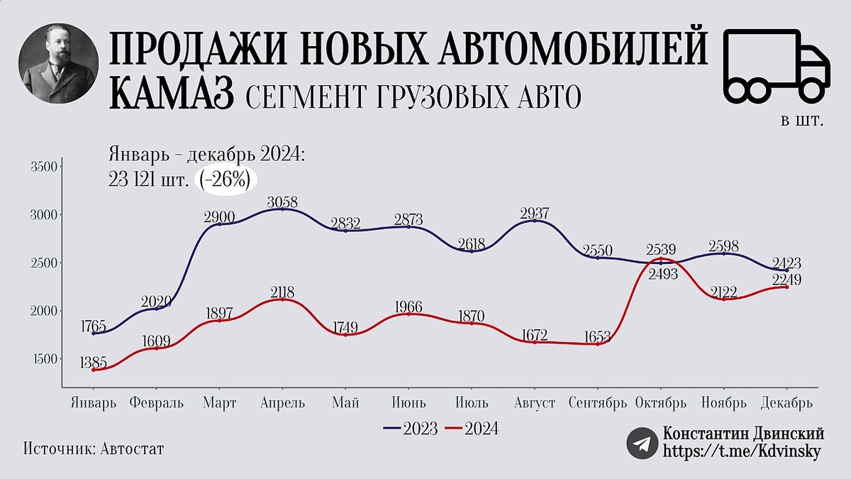 В 2022 году автоконцерн КАМАЗ совершил самый настоящий подвиг. Буквально за несколько месяцев были найдены решения по замещению комплектующих западного производства. Была осуществлена переориентация либо на отечественные детали, либо были найдены аналоги в странах юго-восточной Азии. Более того, КАМАЗ уже в 2022 году уже без помощи Daimler сумел запустить серийное производство грузовиков поколения К5. Разумеется, планы по объемам выпуска пришлось сдвинуть вправо, но на это есть объективные обстоятельства. Уже по итогам 2024 года удалось произвести 6506 единиц грузовиков К5, что на 26,5% больше, чем годом ранее. Сразу же после преодоления внезапно навалившихся проблем КАМАЗ перешел к ускоренному развитию. По итогам 2023 года была продана 31 тысяча грузовиков российского бренда. Это оказалось больше, чем в доковидном 2019 году (27,6 тыс), но несколько меньше, чем в 2021 году (35,15 тыс), когда имел местно отложенный спрос. В 2024 году КАМАЗ был готов увеличивать и производство, и прода