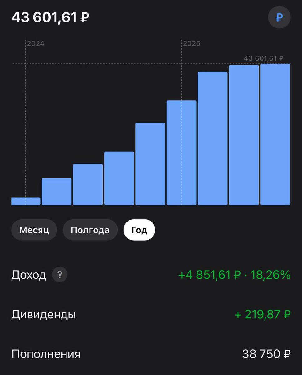 Напомню это челендж с коллегами, каждый рабочий день пополняем брокерский счет на 250 рублей и инвестируем.