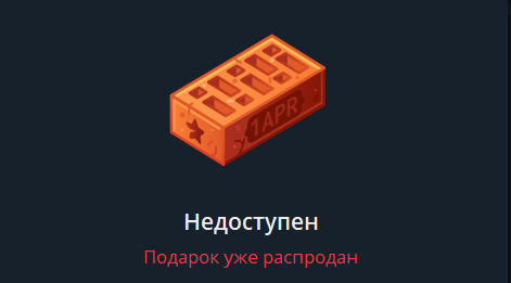 Основатель Telegram Павел Дуров в ночь на 1 апреля запустил в мессенджере новый виртуальный подарок — кирпич. Подарки были приурочены к первому апреля и, несмотря на необычный формат, разлетелись с невероятной скоростью. По подсчетам, вся партия в 7 тысяч штук полностью продали за 34 минуты. Первый кирпич приобрели в 1:57 по московскому времени, последний — в 2:31. Стоимость одного подарка составляла 5 тысяч звезд. На Android это эквивалентно 9 тысячам рублей (с учетом того, что 100 звезд стоят 180 рублей). Для пользователей iOS цена оказалась выше — около 12 тысяч рублей, так как у них 100 звезд обходятся в 230 рублей. Таким образом, всего Telegram продал 7 тысяч виртуальных кирпичей. Доход от продажи варьируется в зависимости от платформы, на которой были совершены покупки. Общая выручка могла составить от 63 до 95 миллионов рублей. Официальных комментариев от самого Павла Дурова или команды Telegram по поводу запуска и итогов акции на момент публикации не поступало.