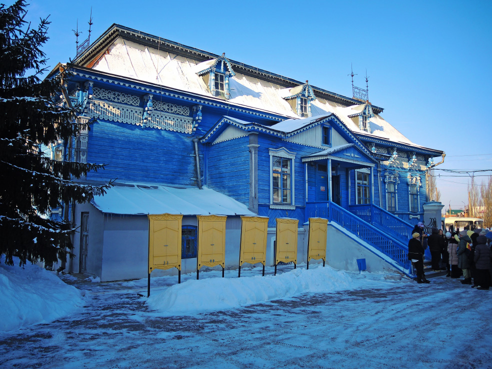 Продолжение рассказа о поездке в Сызрань 1 марта 2025 года. Это была организованная экскурсия. Пару свободных часов для самостоятельной прогулки я смог выкроить, эту часть уже показал, ссылку можно найти в конце статьи. Теперь перехожу к «официальной» части. Первая точка нашего маршрута - дом купца Чернухина. Это одно из самых красивых зданий Сызрани, сохранившихся с дореволюционного времени. Особенно оно интересно тем, что полностью сделано из дерева. На внешний осмотр в этот раз времени не было совсем. Хорошо, что я уже был здесь в 2022 году. Ссылку на более подробный обзор добавлю в конце статьи. Рядом с домом заметил ряд наличников, которых не было в мой предыдущий визит сюда. Оказалось, что это информационные стенды по истории Сызрани, которые я видел во время фестиваля «Серебряные трубы Поволжья» в 2023 году. Сейчас в доме размещается Выставочный зал, филиал Краеведческого музея. Одна из форм экскурсионного обслуживания - интерактивная программа «В купеческом доме», участниками к