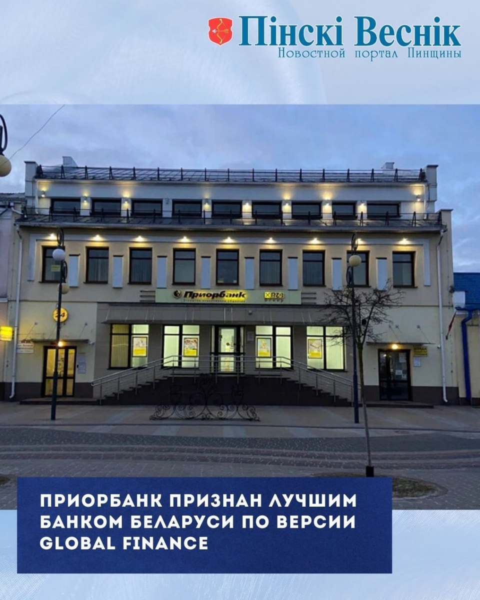 📌Приорбанк признан лучшим банком Беларуси по версии международного финансового издания Global Finance. Аналитики журнала включили банк в рейтинг финансовых учреждений Центральной и Восточной Европы, отметив его лидерские позиции в регионе. 📍📍@Пинский Вестник ЮТУБ | САЙТ| ИНСТ | ВК | ОК | ФЕ | Прислать новость